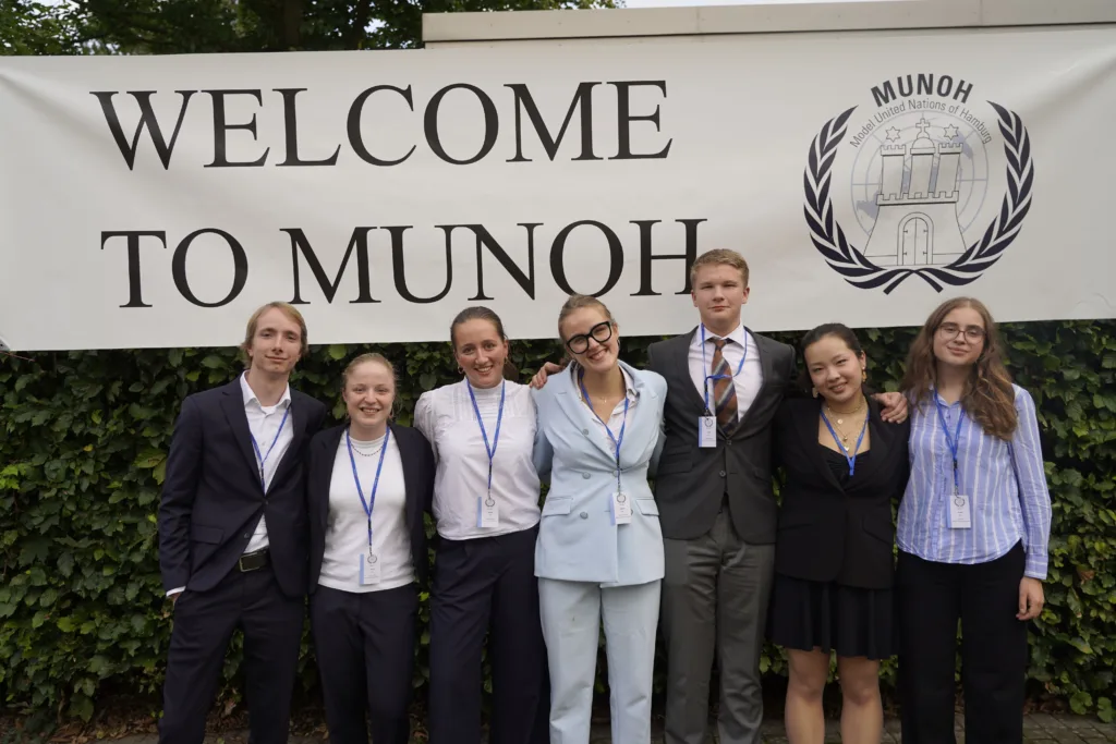 Es war nicht einfach. Genauer gesagt, echt schwer. Denn als Diplomaten aktuell die Position Israels zu vertreten, kann schon als Herausforderung gelten. In Hamburg schlüpften die Mitglieder unseres Model United Nations-Teams für vier Tage in die Rolle israelischer Delegierter und diskutierten Themen wie die Kinderrechte in Gaza oder die Situation Taiwans. Sie machten erfolgreich Vorschläge für nachhaltigen Wohnungsbau oder debattierten Möglichkeiten zur Verbesserung der Wasserversorgung in Afrika. Und dies alles auf Englisch und mit Schülerinnen und Schülern aus Deutschland, Dänemark, Italien, Frankreich und Zypern. Umso erfreulicher also, dass alle Mitglieder des MUN-Teams in der ´Closing Ceremony´ lobend erwähnt wurden. Drei von ihnen erhielten sogar die ´Awards´ in ihren Komitees und machten Israel damit zum erfolgreichsten Land der Konferenz. Herzlichen Glückwunsch an Johanna Li und Malte v. Ehrenstein (Best Delegate, Q13) sowie Leopold Mickat (Most Distinguished Delegate, 11d).