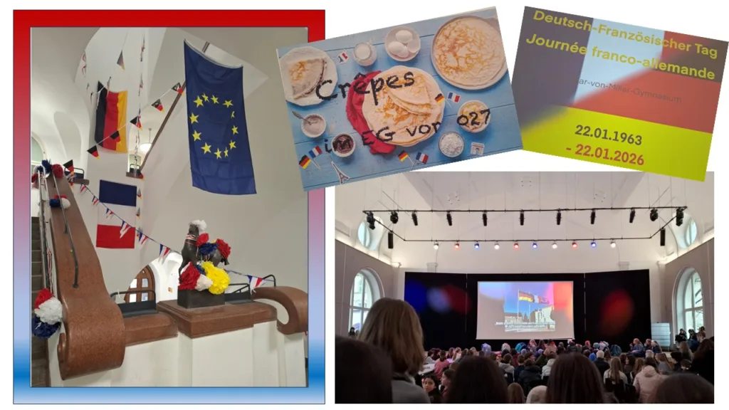 Am 22. Januar 1963 unterzeichneten Konrad Adenauer und Charles de Gaulle den Élysée-Vertrag und besiegelten damit – 18 Jahre nach dem Ende des Zweiten Weltkrieges – die deutsch-französische Freundschaft. Diesen sogenannten „Deutsch-französischen Tag“ haben wir am „Oskar“ mit Gewinnspielen, Crêpes-Verkauf und der Präsentation von Videos, die Schülerinnen und Schüler der 8. und 9. Jahrgangsstufe im Unterricht erstellt haben, gebührend gefeiert.